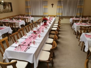Durch seine Größe bietet sich unser Saal hervorragend für Veranstaltungen an! Ob Geburtstagsfeier mit der ganzen Familie, Firmenfeiern oder sonstigen Events – mit verschiedenen Möglichkeiten zur Bestuhlung wird im Saal jede Feier zum Hit!